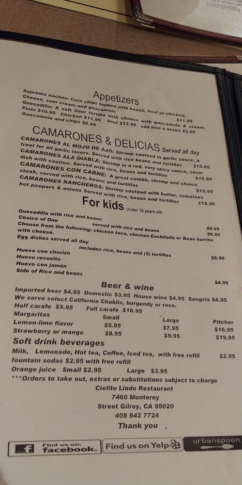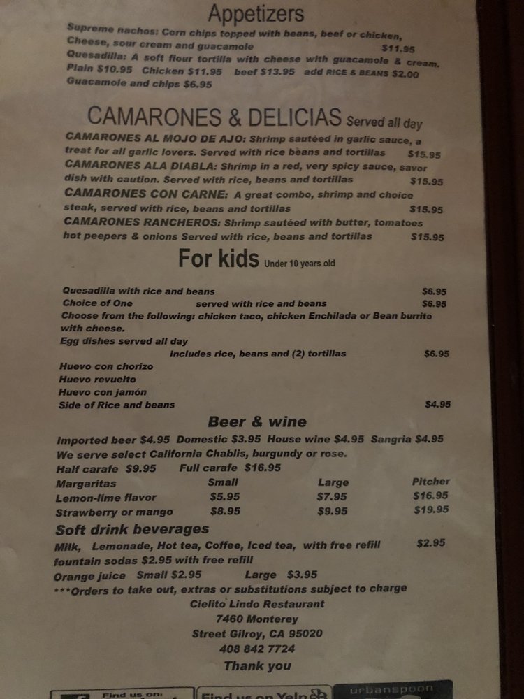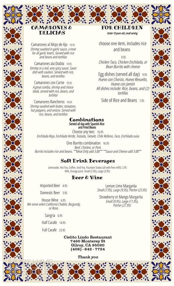 Welcome to Cielito Lindo Restaurant, a delightful Mexican culinary haven located in the heart of Gilroy, California. This vibrant eatery offers an extensive menu that celebrates authentic flavors, giving you a taste of Mexico right in your own backyard.