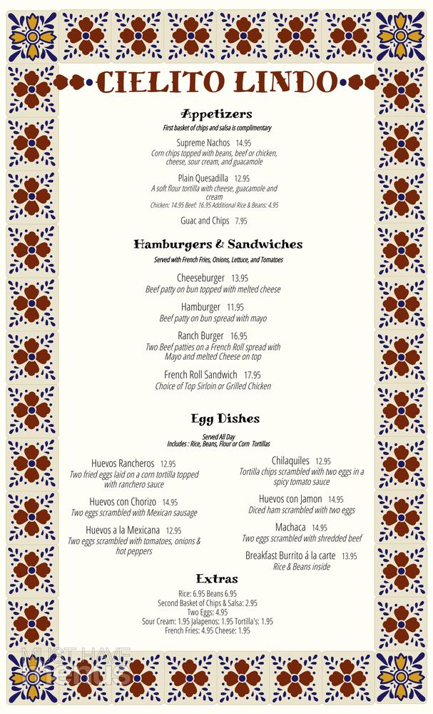 Visit Cielito Lindo for a satisfying meal, lively ambiance, and a chance to enjoy Mexican cuisine in a cozy setting.