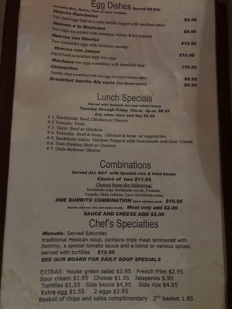 Tortilla chips scrambled eggs in a spicy sauce. Includes rice, beans, flour, or corn tortillas.